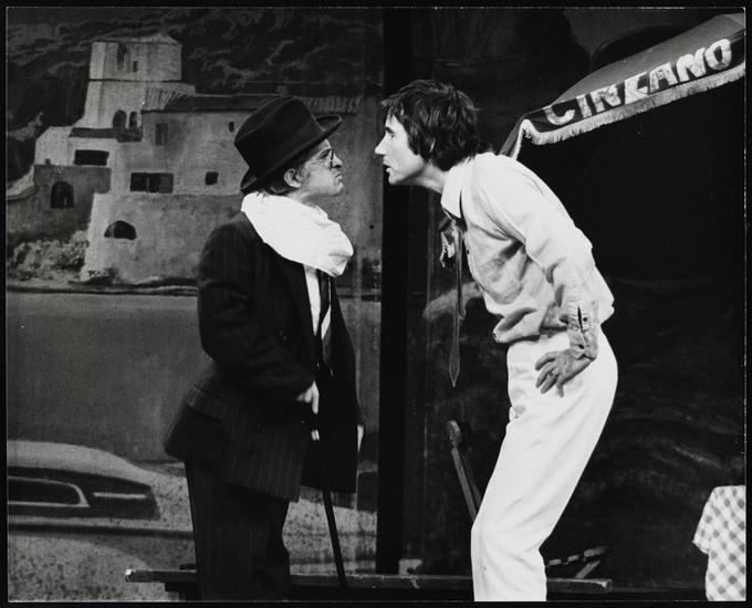 [Gavin Reed as Sylvestro and Jim Dale as the title role in "Scapino".]