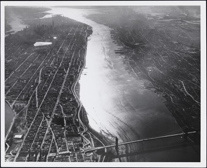 [Aerial view of Brooklyn Piers and Manhattan.]