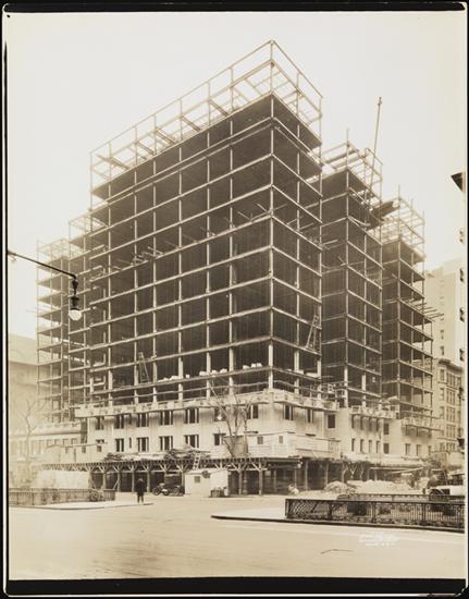 Central Park West between West 97th Street and West 100th Street. Park West Village apartments. Construction view