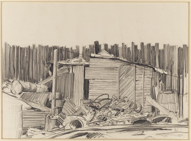 Hooverville (view across old reservoir behind Metropolitan Museum of Art)