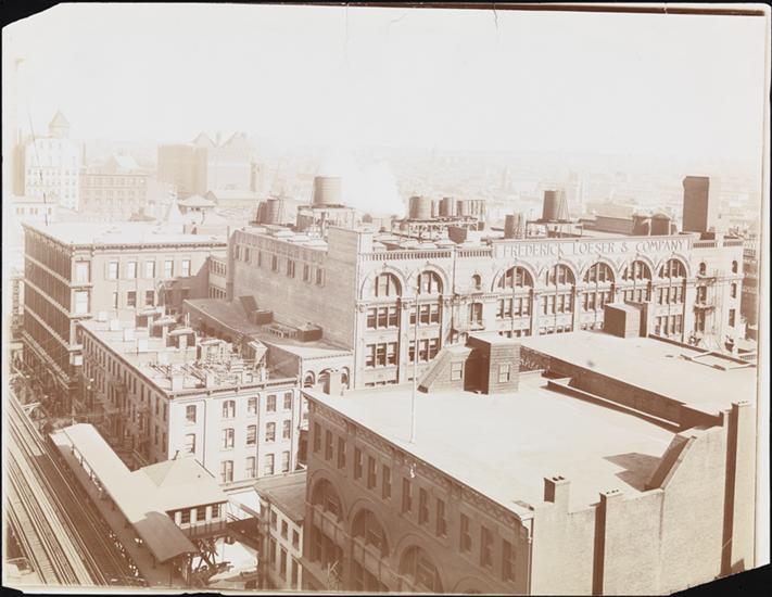 [From the Brooklyn Bridge, looking up Fulton Street.]