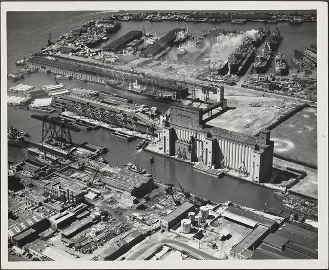 [Winch discharging lumber from aft section of S. S. Yorkmar at P.A. Columbia Street Pier.]