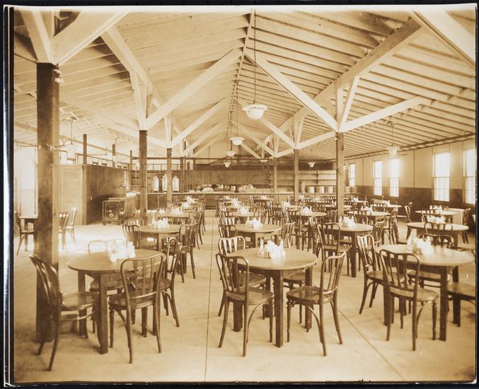 [Interior, cafeteria dining room.]
