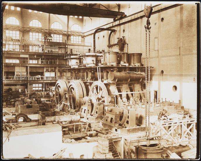 [Interior, manufacturing shop, metal melting furnace oven.]
