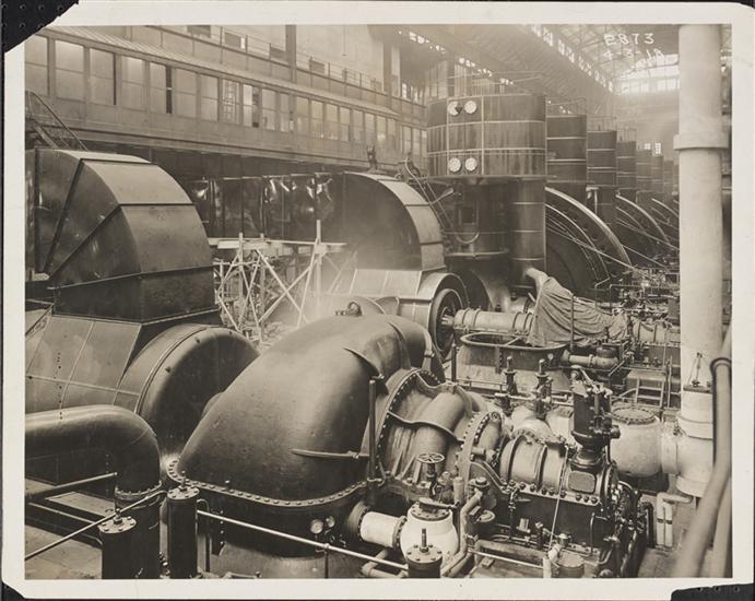 Inscription / technical details In pencil, on verso: Gen. View New Turbine Work / 59th St P. H. 1395-96 / April 1918 / Interborough Rapid Transit / power station / originally Manhattan Ry Co. / for elevated R.R. power.