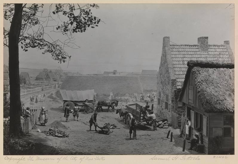 [Stone Street, New Amsterdam, 1659. Two photographs of a miniature group installed in the J. Clarence Davies Gallery, Museum of the City of New York.]