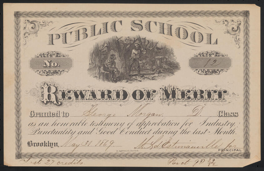 [Testimonial to punctuality, deportment and diligent attention to study.]