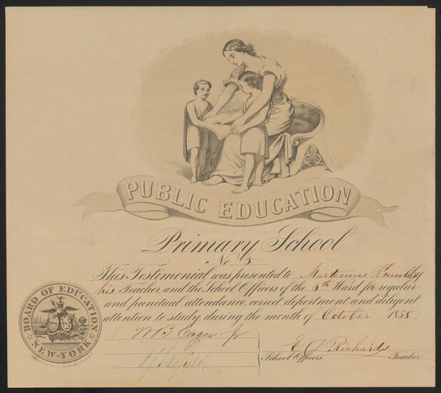 [Testimonial to punctuality, deportment and diligent attention to study.]