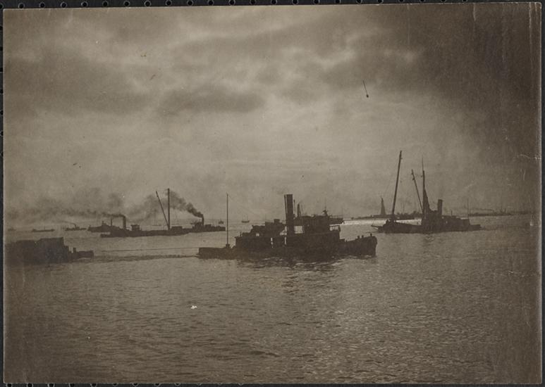 [The "Leviathan" passing the Statue of Liberty with 27th Division returning.]