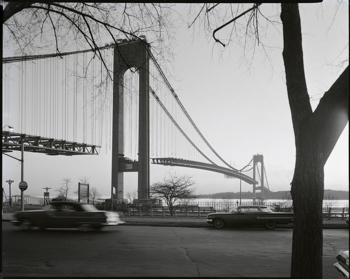 Verrazano Narrows Bridge. Construction view from John Paul Jones Park