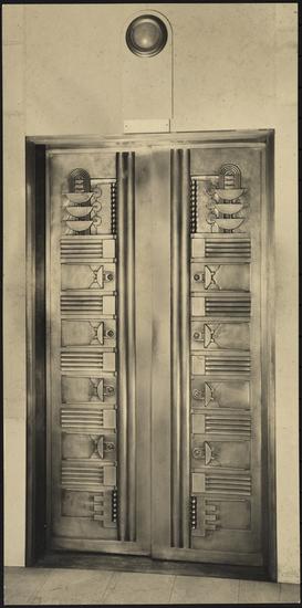 Building, northwest corner 37th Street and 6th Avenue [Elevator door.]