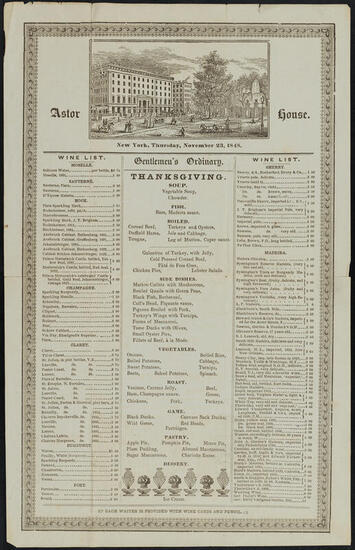 The Menu and Wine List of Wednesday, August 15, 1838 [Astor House] Is Reproduced Herein Through Courtesy of Hotel Waldorf Astoria