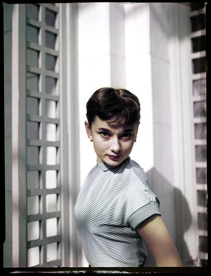 [Julie Harris presenting Theatre World awards for Promising Personalities to Audrey Hepburn and Tony Bavaar.]