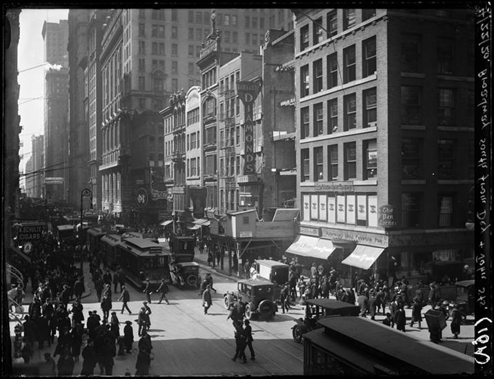 Broadway Series. Bway looking north from Exchange Place showing east side of street. Picture was taken from the second floor fire-escape of No. 53 Bway.