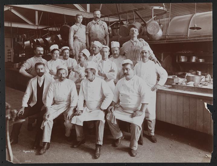 Chef Robert & Cooks in Dining Salon. S.S. "France" Pier 57 North River.