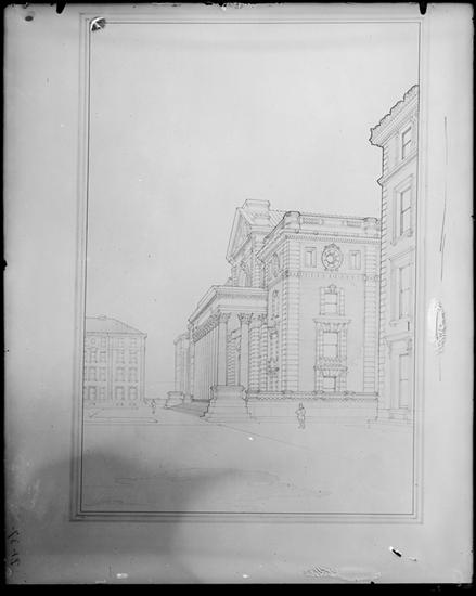 Bellevue Hospital, rendered perspective of facade by Jules Crow.