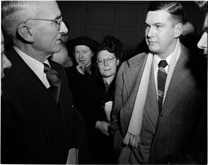 Dale Carnegie [Dale Carnegie talking with a group of people.]