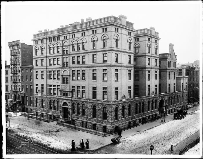 2nd Avenue at the corner of 13th Street. New York Eye and Ear Infirmary, Schermerhorn Pavilion.