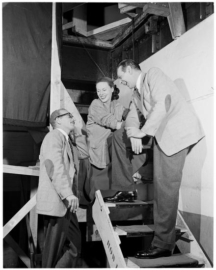 Fashion Models: Lisa Fonssagrives [Meg Mundy talking to two men.]