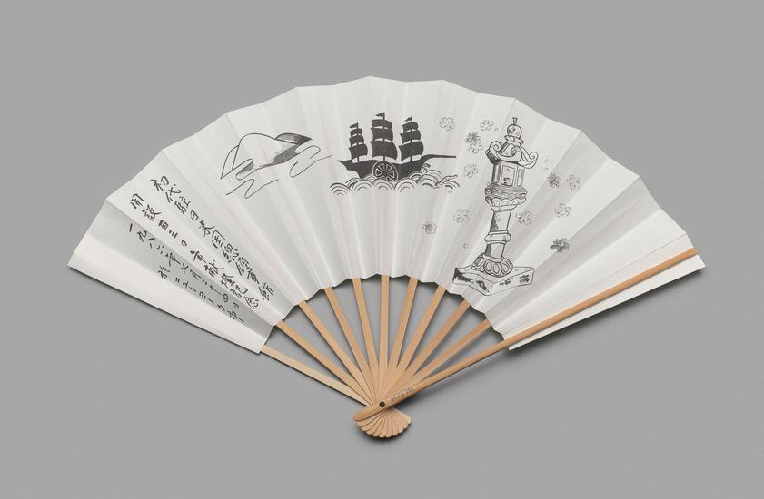 Folding fan of painted paper