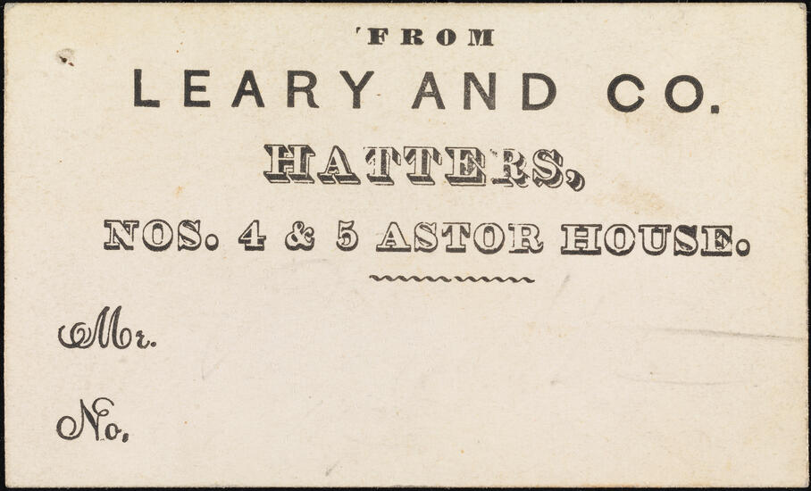 Leary & Co. Leaders & Introducers of Fashions for Gentlemens Hats