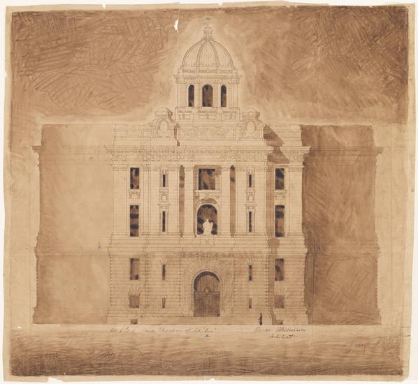 East 161st Street and Grand Concourse. Bronx Courthouse. View of south entrance and statuary