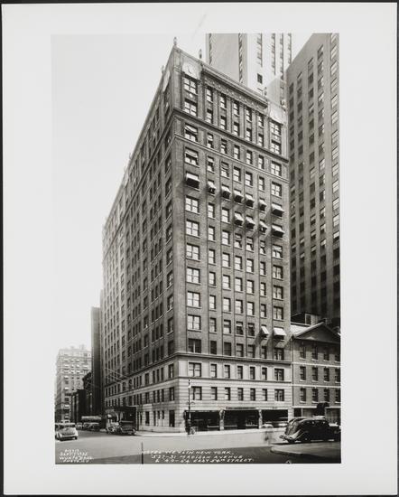 Park Avenue at the N.E. corner of East 54th Street. Apartment house.