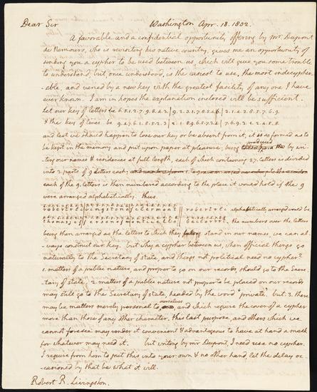 Letter from Thomas Jefferson to Robert R. Livingston, Washington, D.C., November 4, 1803