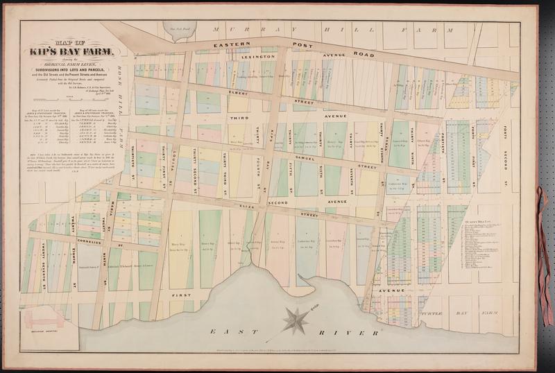 [Map of Kip family lots in Kips Bay, bordered by Post Road and the East River]