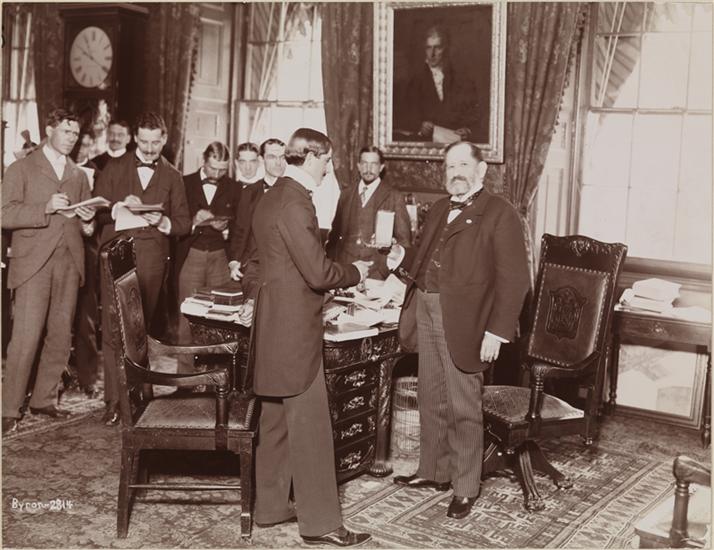 Portrait, Mayor Strong Presenting Medal to a Life Saver, City Hall.