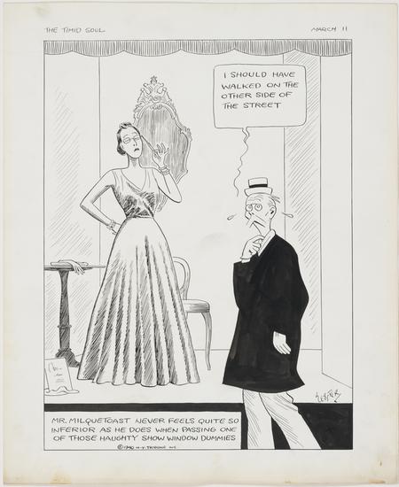 Mr. Milquetoast never likes to be seen looking at undraped statuary