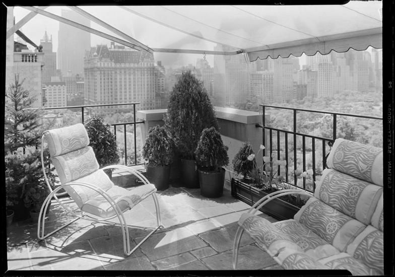 Mrs. T. J. Lewis (Elizabeth Arden) [residence], 834 Fifth Avenue, NYC. Terrace looking north.