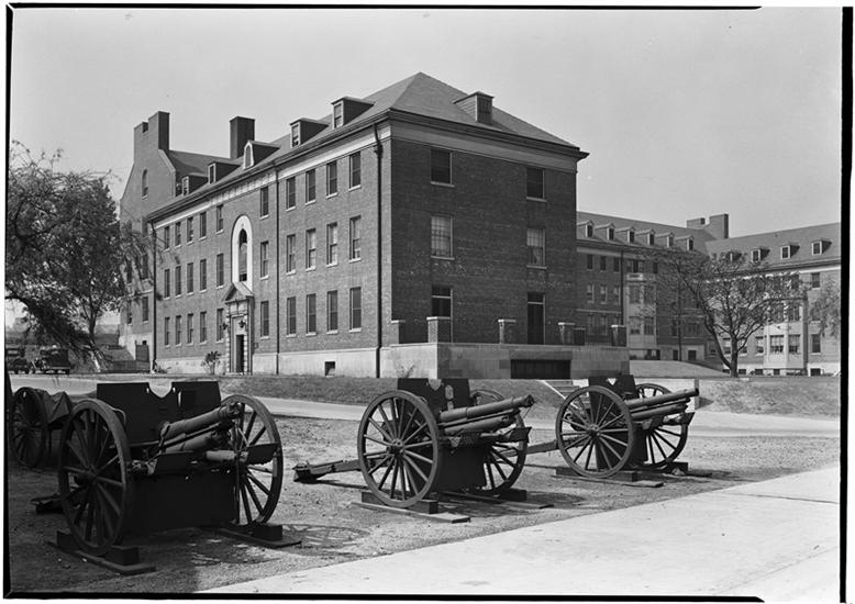 Officer's apartments, Governors Island, N.Y. 3/4 view cannon foreground I.