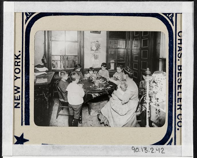 [Family in room in tenement house.]