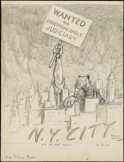 [Political cartoon depicting the investigation of Albert Marinelli.]