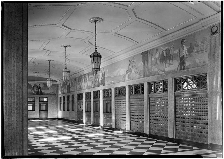 Post Office Building. Flushing, Long Island, [Queens]. Alcove and lobby end.