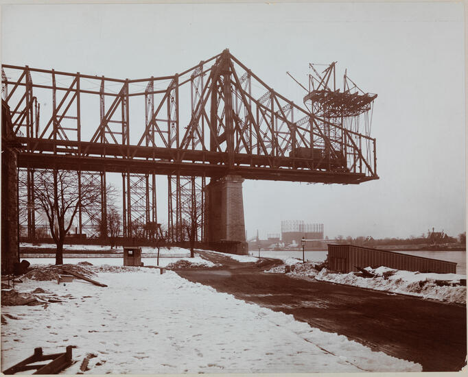 Queensboro Bridge. View of bridge framework from Suicide Balcony.