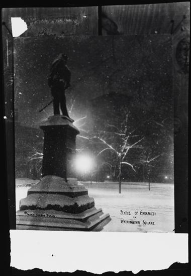 [Washington Square. Garibaldi statue, decorated for Italian War Commission parade.]