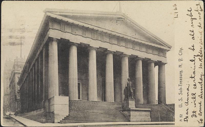 Wall Street and Nassau Street. U.S. Sub Treasury