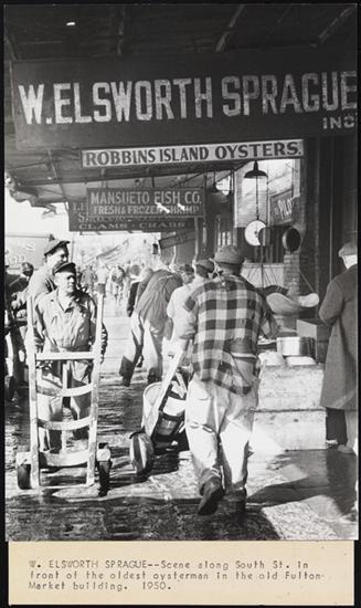 Fishdealers' Horseplay. [Fish sellers outside of the Fulton Fish Market.]