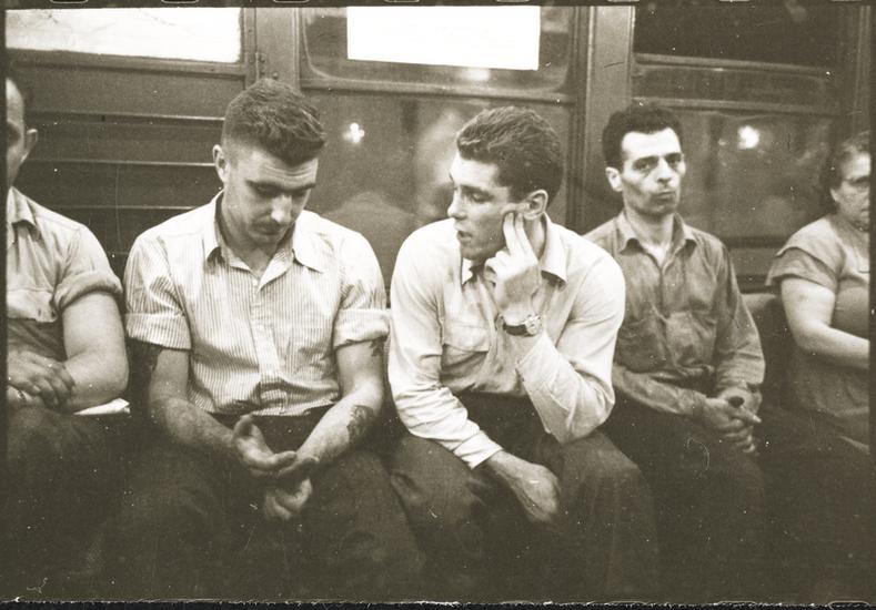Walter Cartier - Prizefighter of Greenwich Village [Walter Cartier with a man on a subway.]
