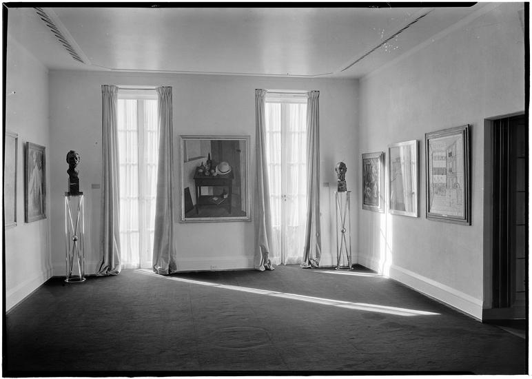 Whitney Museum of Modern Art. Grey gallery window & south fireplace.