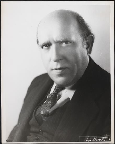 [Maurice Schwartz, Zalman Shneour, David Licht, and Joseph Rumshinsky at the opening of "Song of the Dnieper".]