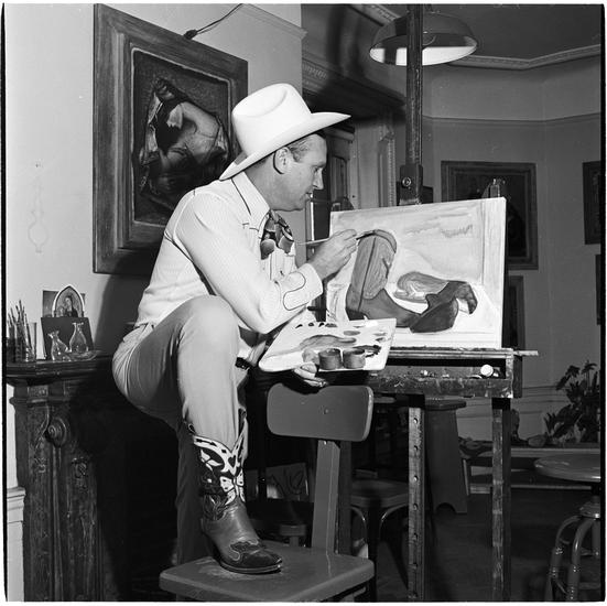 Art by Celebrities Sponsored by the Urban League [Man in cowboy attire painting.]