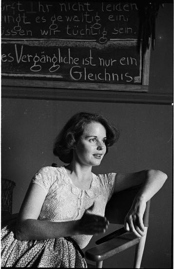 Beatrice Pearson [Beatrice Pearson in front of a blackboard.]