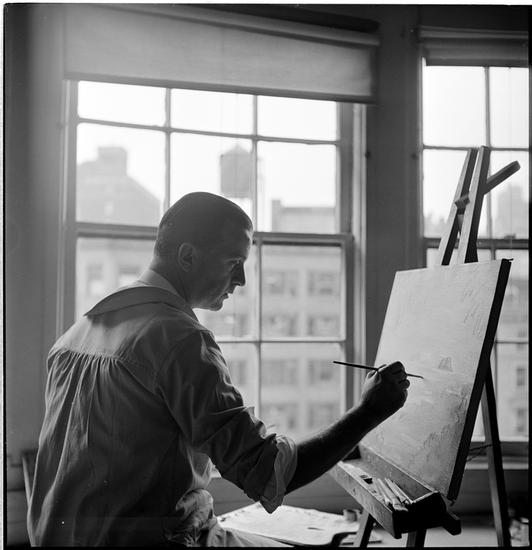 Art by Celebrities Sponsored by the Urban League [Man painting.]