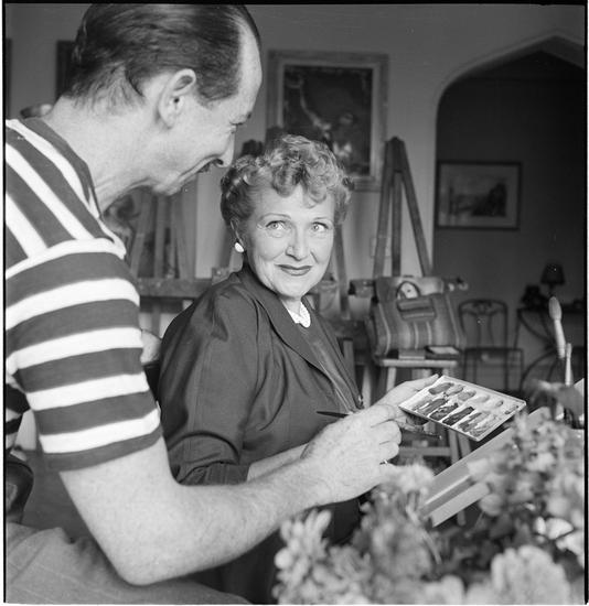 Art by Celebrities Sponsored by the Urban League [Helene Paul and a man in an artists' studio.]