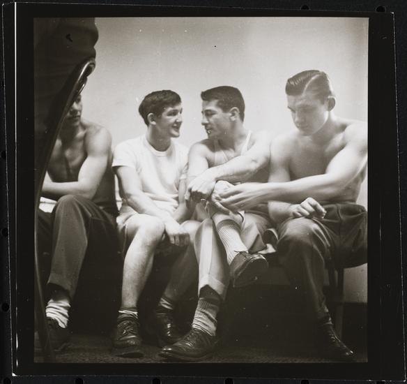 Rocky Graziano, He's a Good Boy Now [Rocky Graziano with men in a locker room.]