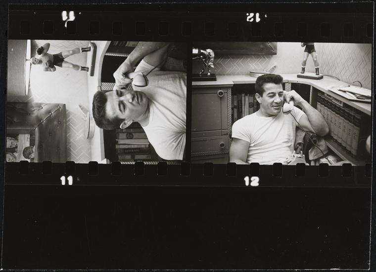 Rocky Graziano, He's a Good Boy Now [Rocky Graziano talking on a telephone in an office.]