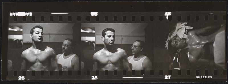 Rocky Graziano, He's a Good Boy Now [Man applying petroleum jelly to Rocky Graziano.]